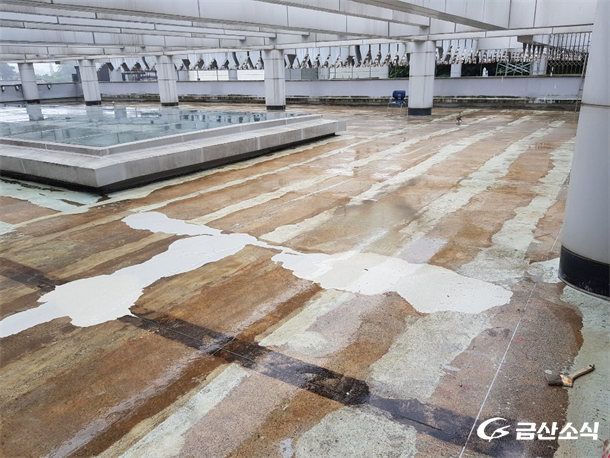 ¡ã ±Ý»ê´Ù¶ô¿ø ´ë°ø¿¬Àå ·Îºñ¿¡ ´©¼öµÈ ºô¹°ÀÌ ¶³¾îÁ® ¹°À» Èí¼öÇϰí ÀÖ´Â ¸ð½À.