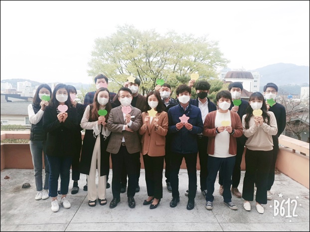 ¡ãÁö³ 8ÀÏ ±è°æ¸ð Áö¿ª°æÁ¦°úÀå(¾ÕÁÙ ¿ÞÂÊ ³× ¹øÂ°)°ú Á÷¿øµéÀÌ Ã»·Å½Çõ ÀÇÁö¸¦ ´ãÀº ½Çõ ±ÛÀ» µé°í ±â³ä»çÁøÀ» ÃÔ¿µÇÏ´Â ¸ð½À. ¨Ï±Ý»ê±ºÃ»