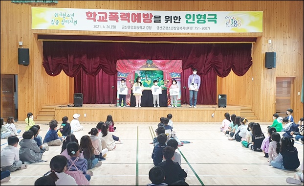 ±Ý»ê±ºÃ»¼Ò³â»ó´ãº¹Áö¼¾ÅÍ(¼¾ÅÍÀå ¹Ú¼±¿ì, ÁߺδëÇб³ »êÇÐÇù·Â´Ü À§Å¹)°¡  26ÀÏ ±Ý»êÁß¾ÓÃʵîÇб³¿¡¼­ ÃʵîÇб³ 1~2Çгâ 160¿©¸íÀ» ´ë»óÀ¸·Î Çб³Æø·Â¿¹¹æ ÀÎÇü±ØÀ» ÁøÇàÇß´Ù.