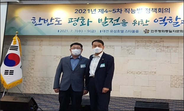 ´ëÅë·ÉÁ÷¼Ó ¹ÎÁÖÆòÈÅëÀÏÀÚ¹®È¸ÀÇ(ÀÇÀå ¹®ÀçÀÎ ´ëÅë·É)°¡ Áö³ 7ÀϺÎÅÍ 9ÀϱîÁö ´ëÀü À¯¼ºÈ£ÅÚ ½ºÅ¸º¼·ý ȸÀÇÀå¿¡¼ ¡®Çѹݵµ ÆòȹßÀüÀ» À§ÇÑ ¿ì¸®ÀÇ ¿ªÇÒ¡¯À̶ó´Â ÁÖÁ¦·Î 2021³âµµ Á¦4~5Â÷ Á÷´Éº° Á¤Ã¥È¸ÀǸ¦ °³ÃÖÇß´Ù.