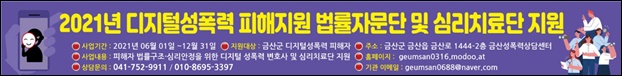 ±Ý»ê¼ºÆø·Â»ó´ã¼¾ÅÍ(Ȳµ¿Ã¶ ¼ÒÀå)´Â µðÁöÅмºÆø·ÂÇÇÇØ°¡ ´Ã¾î³²¿¡ µû¶ó µðÁöÅÐ ¼ºÆø·Â ÇÇÇØÀÚÁö¿ø Àü¿ë º¸Á¶±ÝÀ» ¹Þ¾Æ ¡®2021³â µðÁöÅмºÆø·ÂÇÇÇØÀÚ¸¦ À§ÇÑ ¹ý·üÀÚ¹®´Ü ¹× ½É¸®Ä¡·á´Ü¡¯À» ¿î¿µÇϰí ÀÖ´Ù°í 27ÀÏ ¹àÇû´Ù.