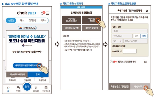 Ä«µå¡¤¸ð¹ÙÀÏ ¹æ½Ä ±Ý»ê»ç¶û»óǰ±ÇÀÇ °æ¿ì ¡®Áö¿ª»óǰ±Ç chak¡¯ ¾Û¿¡¼ ½ÅûÇÒ ¼ö ÀÖÀ¸¸ç ´ÙÀ½³¯ Áö±ÞµÅ ¹Ù·Î »ç¿ëÇÒ ¼ö ÀÖ´Ù. ¶ÇÇÑ ¾ÛÀ» ÅëÇØ Áö¿ø±Ý ´ë»óÀÚ Á¶È¸, ½Åû, Áö±ÞÇöȲ ¹× »ç¿ë ¾Ë¸²¼ºñ½ºµµ Á¦°øÇÑ´Ù.