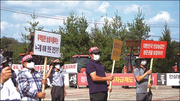 ÇöÀç Àλï³ó¾÷ÀÌ ±âŸÀÛ¹°(µµ¶óÁö, °í±¸¸¶)º¸´Ù ¸øÇÑ ¼öÀͱ¸Á¶¸¦ °®°í ÀÖÀ½¿¡µµ Á¤ºÎ´Â ¾Æ¹«·± Á¶Ä¡µµ ´ëÃ¥µµ ¾øÀ¸¸ç, ´ëÇѹα¹ ´ëÇ¥ ³ó»ê¹°À̶ó ÇÏ¿© À¯ÀÏÇÏ°Ô Àλï»ê¾÷¹ý±îÁö Á¦Á¤ÇØ ±ÔÁ¦¿Í ±ÔÁ¤¸¸ ÀÖÀ» »Ó ³ó¾÷ÀεéÀÇ »ýÁ¸Àº ³ª¸ô¶ó¶ó ÇÑ´Ù´Â ÁÖÀåÀÌ´Ù.