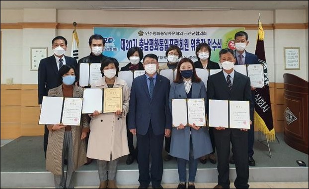 ´ëÅë·ÉÁ÷¼Ó ¹ÎÁÖÆòÈÅëÀÏ ÀÚ¹®È¸ÀÇ ±Ý»ê±ºÇùÀÇȸ(ȸÀå ±èÈ£ÅÃ)°¡ Áö³ 4ÀÏ »ï³²Á¦¾à ȸÀǽǿ¡¼ Á¦20±â Ãæ³²ÆòÈÅëÀÏÆ÷·³(´ëÇ¥ °â Ãæ³²Áö¿ªÈ¸ÀÇ ºÎÀÇÀå ±èÈ«±Ù, µå¸²ÅØ ´ëÇ¥ÀÌ»ç) ȸ¿øµé¿¡ ´ëÇÑ À§ÃËÀå Àü¼ö½ÄÀ» °³ÃÖÇß´Ù.