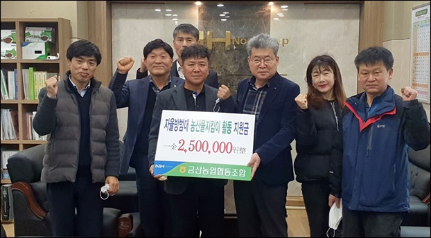 ÀÌ´Â ±Ý»ê³óÇùÇùµ¿Á¶ÇÕ¿¡¼­ ±Ý»ê±ºÀÚÀ²¹æ¹ü¿¬ÇÕ´ë¿¡¼­ °¢ Áö¿ª ³ó¹ÎµéÀÇ ³ó»ê¹°À» Áö۱â À§ÇØ ¼øÂûȰµ¿À» Çϰí ÀÖ´Â °Í¿¡ ´ëÇÑ °¨»çÇÑ ¸¶À½À» ÀüÇÏ´Â °ÍÀ¸·Î Áö¿ø±Ý 250¸¸ ¿øÀ» Àü´ÞÇß´Ù.