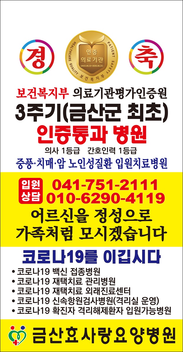À̹ø ¡®¿ä¾çº´¿ø ÀÎÁõÀÇ·á±â°ü¡¯ ÀÎÁõÀ¸·Î ±Ý»êÈ¿»ç¶û¿ä¾çº´¿øÀº 1ÁÖ±â(2013), 2ÁÖ±â(2018), 3ÁÖ±â(2022)ÀÎÁõÀ» ¹Þ´Â ±Ý»ê±º ÃÖÃÊÀÇ ¿ä¾çº´¿øÀ̶ó´Â ¿µ¿¹¸¦ ¾ò°Ô µÆ´Ù.