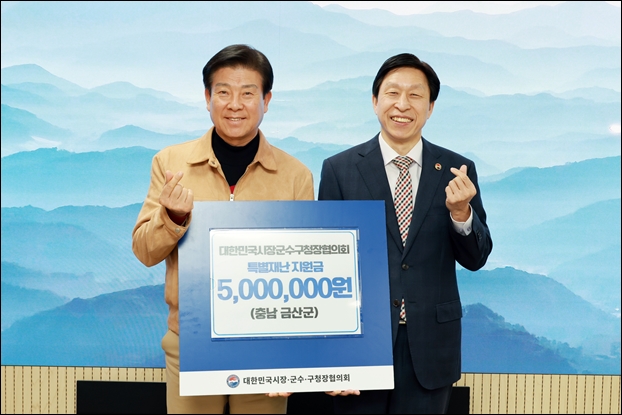 ´ëÇѹα¹½ÃÀ屺¼ö±¸Ã»ÀåÇùÀÇȸ(»ç¹«ÃÑÀå Á¶µ¿µÎ, »çÁø ¿À¸¥ÂÊ)´Â Áö³ 8ÀÏ ±Ý»ê±ºÃ»À» ã¾Æ Áö¹æÀÚÄ¡´Üü °£ »óÈ£Çù·Â ¹× ÀçÇØº¹±¸ºÎ´ã °æ°¨À» À§ÇØ Áö¿ø±Ý 500¸¸ ¿øÀ» ±Ý»ê±º¿¡ Àü´ÞÇß´Ù.
