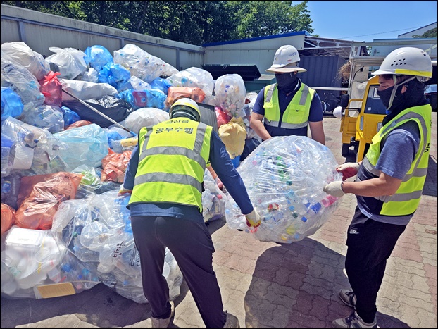 ¡ã±Ý»ê±º ¼Ò¼Ó ±Ù·ÎÀÚµéÀÌ ¿Â¿­Áúȯ ¿¹¹æ ¹°Ç°À» Âø¿ëÇÏ°í ¾÷¹«¸¦ ÇÏ´Â ¸ð½À.