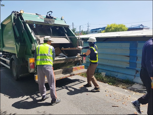 ¶ÇÇÑ È¯°æ¹ÌÈ­¿ø µî Á÷¿øµéÀÌ ¼öÇØ ÇÇÇØ °¡±¸¸¦ ¹æ¹®ÇØ Ä§¼öµÈ Áý±â ºñǰ µé ¼ö°Å¡¤Ã³¸®µµ ÁøÇàÇß´Ù. ±× °á°ú ±Ý»êõ Àαٿ¡ ÅÂdz µîÀ¸·Î ½×ÀÎ ¾²·¹±âµé 800kg°¡·®ÀÌ ¼ö°ÅµÆ´Ù.