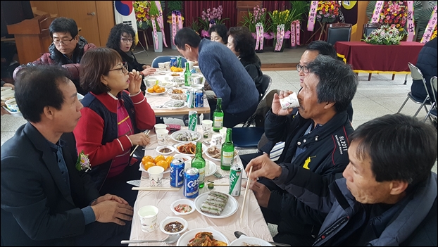 ÇÑÆí, À̳¯ ÀÌ¡¤ÃëÀӽĿ¡¼­ ¹Ù¸£°Ô»ì±â ³²Àϸé À§¿øÈ¸ ȸ¿øµéÀº ÇÑÃæ·Ä ÀÌÀÓȸÀåÀÇ ³ë°í¿¡ °¨»ç¸¦ Ç¥Çϰí, ¾çºÀ±Ô ½ÅÀÓȸÀåÀ» ÃàÇÏÇϱâ À§ÇØ ½Ê½ÃÀϹÝÀ¸·Î  ¼öÀ°°ú ¶±±¹, ¶±, °úÀÏ, À½·á µî ´Ù°ú¸¦ Á¤¼º²¯ ÁغñÇØ ¸ðµÎ°¡ ÇÔ²²ÇÏ´Â ¶æ ±íÀ» ÀÚ¸®¸¦ ¸¸µé¾ú´Ù.