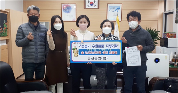 ±Ý»ê±º º¹¼ö¸é °î³²¸®¿¡ À§Ä¡ÇÑ ±Ý»ê°ø¿µ(´ëÇ¥ À¯º´ÅÃ)ÀÌ Áö³­ 23ÀÏ ¼Ò¿ÜÀÌ¿ôÀÇ µ¿Àý±â ³­¹æÀ» À§ÇØ ½á´Þ¶ó¸ç 300¸¸ ¿ø »ó´çÀÇ »óǰ±ÇÀ» º¹¼ö¸éÁö¿ª»çȸº¸ÀåÇùÀÇü¿¡ Àü´ÞÇß´Ù.