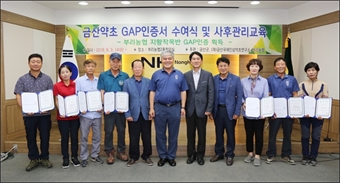 ±Ý»ê±ºÀº Áö³­ 2ÀÏ ºÎ¸®³óÇù¿¡¼­ ¡®ÁöȲÀÛ¸ñ¹Ý GAP ÀÎÁõ¡¯ ¼ö¿©½ÄÀ» °¡Á³´Ù°í 4ÀÏ ¹àÇû´Ù.À̳¯ Çà»ç¿¡´Â ¹®Á¤¿ì ±Ý»ê±º¼ö¸¦ ºñ·ÔÇØ, ±Ý»êÀλï¾àÃÊ¿¬±¸¼Ò, ºÎ¸®³ó...