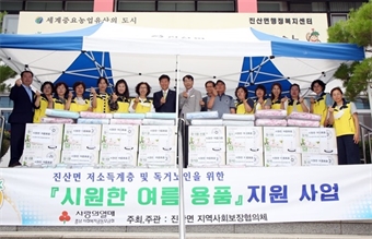 ±Ý»ê±º Áø»ê¸éÁö¿ª»çȸº¸ÀåÇùÀÇü(¹Î°£À§¿øÀå ±èº¹°ï)°¡ Áö³­ 5ÀÏ Àú¼ÒµæÃþ°ú µ¶°Å³ëÀÎ µî 180°¡±¸¿¡ ¿©¸§ À̺Ұú ¼±Ç³±â µî ¿©¸§¿ëǰÀ» Àü´ÞÇß´Ù.À̳¯ ¹Ú¹üÀÎ ±Ý...