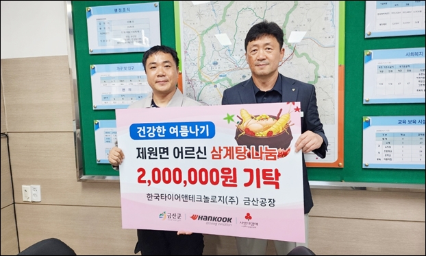 Çѱ¹Å¸ÀÌ¾î¾ØÅ×Å©³î·ÎÁö(ÁÖ) ±Ý»ê°øÀå(°øÀåÀå ¿À»óÇö)Àº Áö³­ 25ÀÏ ±Ý»ê±º Á¦¿ø¸é¿¡ °ÅÁÖÇÏ´Â ¾î¸£½ÅµéÀÇ °Ç°­ÇÑ ¿©¸§³ª±â¸¦ À§ÇØ »ç¿ëÇØ ´Þ¶ó¸ç 200¸¸ ¿øÀ» Á¦¿ø¸éÁö¿ª»çȸº¸ÀåÇùÀÇü¿¡ ÁöÁ¤ ±âŹÇß´Ù.