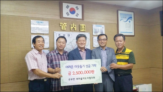±Ý»ê±º ÃßºÎ¸é »õ¸¶À»ÁöµµÀÚÇùÀÇȸ(ÀüȸÀå ±æÀϺÀ, ÇöȸÀå ±è»ó¼º)°¡ Áö³­ 25ÀÏ Ãߺθ鿡 °ÅÁÖÇÏ´Â Ãë¾à°èÃþÀ» À§ÇØ ½á ´Þ¶ó¸ç ÃßºÎ¸é »ç¹«¼Ò¿¡ 250¸¸¿øÀ» ±âŹÇß´Ù.