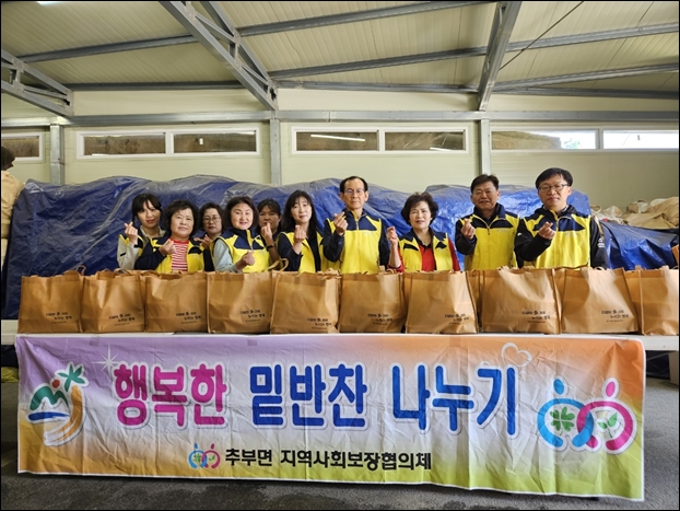 À̳¯ ÇùÀÇü À§¿ø 12¸íÀº ÃߺθéÇàÁ¤º¹Áö¼¾ÅÍ¿¡ ¸ð¿© ¾ó°¥À̵ÈÀå±¹, ¿­¹«±èÄ¡, ´ÀŸ¸®¹ö¼¸ººÀ½, ±èÀÚ¹Ý µîÀ» ÁغñÇÏ°í °ü³» Ãë¾à°èÃþ 60°¡±¸ÀÇ °¡Á¤À» ¹æ¹®ÇØ ¾ÈºÎµµ È®ÀÎÇϰí Á¤¼º²¯ ¸¸µç ¹Ø¹ÝÂùÀ» ÀüÇß´Ù.