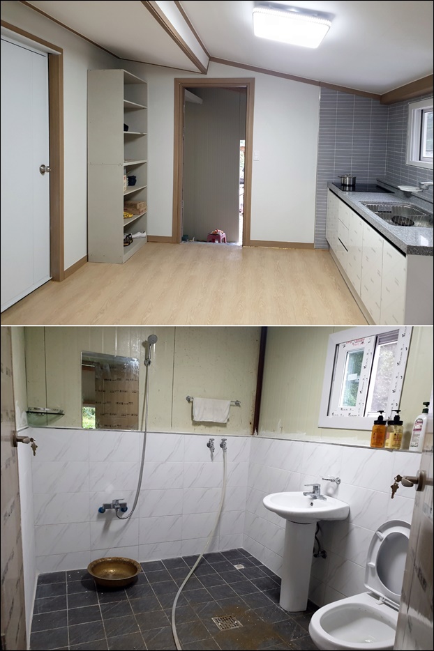 ÀÌ¿¡ ºÀ»ç´Ü¿øµéÀÌ ºÐ¾ßº° °øÁ¤¿¡ Âü¿©ÇØ ±âÁ¸ÀÇ ÁöºØÀ» ö°ÅÇÏ°í ¹æºÎ¸ñÀ¸·Î °ñÁ¶¸¦ ÇÑ ÈÄ ÆÇ³Ú°ø»ç, ¹æ¹Ù´Ú ¹ÌÀå°ø»ç, ³»Àå°ø»ç, Àü±â°ø»ç, ŸÀϰø»ç, µµ¹è, ¹Ù´Ú µ¥ÄÚŸÀϰø»ç, ½ÌÅ©´ë µîÀÇ °ø»ç¸¦ ½Ç½ÃÇß´Ù.
