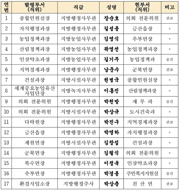 ±Ý»ê±ºÀº 16ÀÏ 17¸íÀ» ´ë»óÀ¸·Î ºÎ¼­Àå±Þ Àλ縦 ´ÜÇàÇß´Ù.