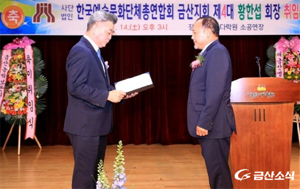 Áö³14ÀÏ ¿ÀÈÄ3½Ã ±Ý»ê´Ù¶ô¿ø ¼Ò°ø¿¬Àå¿¡¼ 150¿©¸íÀÇ ³»¡¤¿Üºó°ú °ü°èÀÚ°¡ Âü¼®ÇÑ °¡¿îµ¥ Á¦4´ë Çѱ¹¿¹¼ú´Üü ÃÑ ¿¬ÇÕȸ ÁöȸÀå(±Ý»ê¿¹ÃÑ) ȲÇѼ· ȸÀå ÃëÀÓ½ÄÀÌ ¼ºÈ²¸®¿¡ ÁøÇàµÆ´Ù