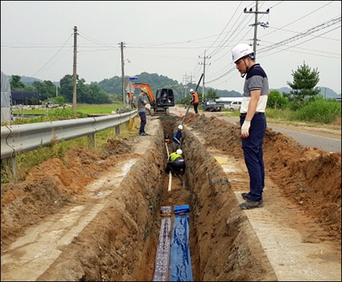 ÃÑ»ç¾÷ºñ 32¾ï3000¸¸¿øÀ» ÅõÀÔÇØ ÃßºÎ¸é ¿ëÁö¸® À§»ý¸Å¸³Àå¿¡¼ ±Ý¼º¸é ¾çÀü¸® À̽½°ø¿ø ¾Õ Çϼö°ü·Î±îÁö ¾à 10km ±¸°£¿¡ °ü·Î¸¦ ¼³Ä¡Çϰí, ±¸°£ Áß°£¿¡ ¾Ð¼ÛÆßÇÁÀå 7°³¼Ò¸¦ ¼³Ä¡ÇÑ´Ù.