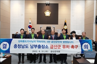 ¡ã ±Ý»ê±ºÀÇȸ ÀÇ¿øµéÀÌ 31ÀÏ Ãæ³²µµ ³²ºÎÃâÀå¼Ò ±Ý»ê À¯Ä¡¸¦ Ã˱¸ÇÏ´Â ¸ð½À. (¿ÞÂʺÎÅÍ ¹Úº´ÈÆ ÀÇ¿ø, Á¤¿Á±Õ ºÎÀÇÀå, ½ÉÁ¤¼ö ÀÇÀå, ÃÖ¸í¼ö ÀÇ¿ø, ¼Û¿µÃµ ÀÇ...