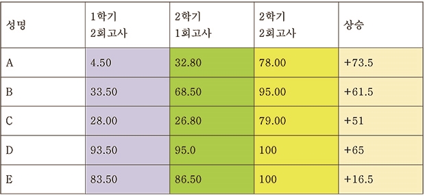 ½ÃÇè °á°ú Çлý ÇÑ ¸íÀº 1Çб⠼ºÀûº¸´Ù ¹«·Á 73Á¡À̳ª Çâ»óµÆ°í, ÇлýµéÀº ¾öû³ º¯È¿Í ¼öÇп¡ ´ëÇÑ ÀڽۨÀÌ »ý±â´Ï ÀÚÁ¸°¨ÀÌ ³ô¾ÆÁ³´Ù°í ÀÔÀ» ¸ðÀ¸°í ÀÖ´Ù°í ÇÑ´Ù.