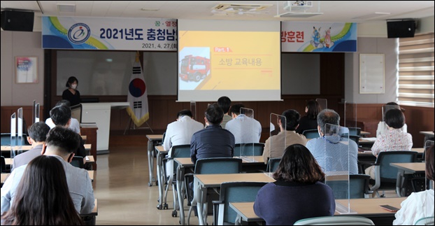 À̹ø ÇÕµ¿¼Ò¹æÈÆ·ÃÀº °ø°ø±â°ü ³» Äڷγª19 °¨¿°º´ È®»ê ¹æÁö¸¦ À§ÇØ ¸¶·ÃµÆÀ¸¸ç, ±Ý»ê¼Ò¹æ¼­¿¡¼­ Á¦°øµÈ ¼Ò¹æ±³À° µ¿¿µ»óÀ» ½ÃûÇÏ´Â ºñ´ë¸é ¹æ½ÄÀ¸·Î ÁøÇàµÆ´Ù.