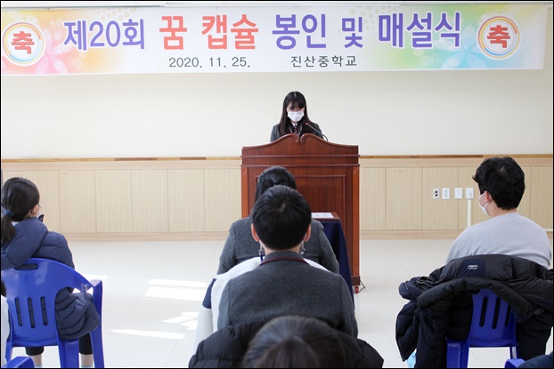 ¡ãÁø»êÁßÇб³ ÀçÇлýÀÌ Áö³ 25ÀÏ ÁøÇàµÈ ¡®²Þ ĸ½¶ ¸Å¼³½Ä¡¯¿¡ ¾Õ¼ ¿Ü±¹¾î·Î ÀÚ½ÅÀÇ ²ÞÀ» ¹ßÇ¥ÇÏ´Â ¸ð½À. ¨ÏÁø»êÁßÇб³