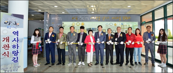 ÃߺÎÁßÇб³´Â °ú°Å, ÇöÀç, ¹Ì·¡ÀÇ Çб³ ¿ª»ç Àձ⸦ ÅëÇØ ´ÙÇÔ²² ³ô°í ÈǸ¢ÇÑ »ç¶÷À¸·Î ¼ºÀåÇØ ³ª°¡ÀÚ´Â ¶æÀ¸·Î ¿ª»ç°üÀ»¡®¿ª»çÇ϶û±æ¡¯À̶ó°í À̸§ ºÙÀ̰í, Áö³ÇغÎÅÍ µ¿¹®µé·ÎºÎÅÍ ÇÐâ½ÃÀýÀÇ ¹°Ç°À» ±âÁõ¹Þ¾Æ Àü½Ã°üÀ» ºñ·ÔÇØ ÇູÇÑ ±æ, Ãß¾ïÀÇ ±æ, ¹Ì·¡ÀÇ ±æ°ú ÈÄ¹è »ç¶ûÀÇ Àü´çÀ» Á¶¼ºÇØ ¿Ô´Ù.