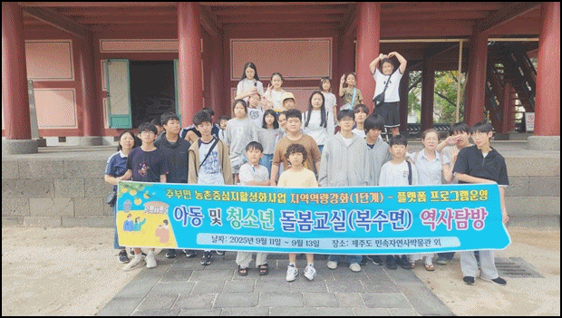 ¶ÇÇÑ ¼¾ÅÍ´Â Áö³ 11ÀϺÎÅÍ 13ÀϱîÁö 2¹Ú 3Àϵ¿¾È Áö¿ª¾Æµ¿¼¾ÅÍ ¾Æµ¿°ú Áöµµ±³»ç 30¿©¸í°ú ÇÔ²² ¡®Á¦ÁÖµµÀÇ ¿ª»ç¿Í ¹®È Ž¹æ »ç¾÷¡¯À» ÁøÇàÇß´Ù. Á¦ÁÖµµ¸¦ ´ëÇ¥ÇÏ´Â ÇØ¼ö¿åÀåÀ̳ª °ü±¤Áö°¡ ¾Æ´Ñ ±¹¸³Á¦ÁÖ¹Ú¹°°ú, ¹Î¼ÓÀÚ¿¬»ç¹Ú¹°°ú, °í»ê¸®À¯ÀûÁö, Ç׸ùÀ¯ÀûÁö, 4.3 ÆòȰø¿ø°ú µ¹¹®È°ø¿ø µî¿¡¼ Á¦ÁÖµµÀÇ ¿ª»ç¿Í ¹®È¸¦ ¹è¿ì°í üÇèÇÏ´Â ±âȸ¸¦ °¡Á³´Ù.