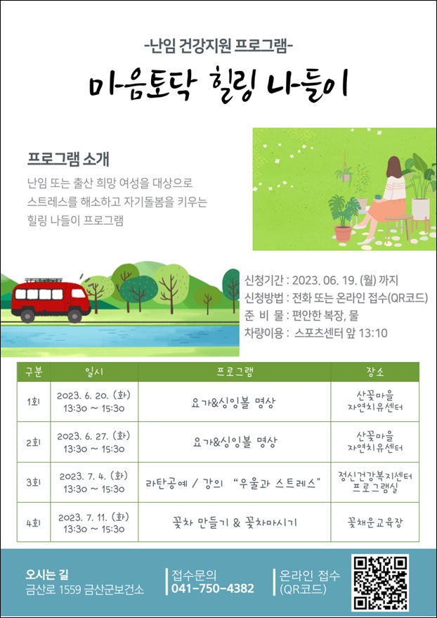 ±Ý»ê±ºº¸°Ç¼Ò´Â °ü³» ³­ÀÓ ¶Ç´Â ÀӽŠÈñ¸Á ¿©¼ºÀ» ´ë»óÀ¸·Î ¿À´Â 20ÀϺÎÅÍ 7¿ù 11ÀϱîÁö ³­ÀÓ °Ç°­Áö¿ø ÇÁ·Î±×·¥ ¡®¸¶À½Åä´Ú Èú¸µ ³ªµéÀÌ¡¯¸¦ ¹«·á·Î ¿î¿µÇÑ´Ù°í ¹àÇû´Ù.
