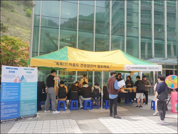 À̳¯ º¸°Ç¼Ò´Â ¡®¸¶À½ÀÌ ±Ã±ÝÇÏÁö ¾Ê³ª¿ä? ±×·³ °°ÀÌ Å¸½ÃÁÒ¡¯¶ó´Â ½½·Î°ÇÀ¸·Î È«º¸ºÎ½º¸¦ ¿î¿µÇØ Ã¼Çè¿¡ Âü¿©ÇÑ ´ëÇлý°ú °ü°èÀÚ 400¿© ¸íÀÇ ¿ì¿ï °ËÁøÀ» ÁøÇàÇÏ°í ¸¶À½¾È½É¹ö½º¿¡¼­ ³úÆÄ¸¦ ÀÌ¿ëÇÑ ½ºÆ®·¹½º °Ë»ç ¹× »ó´ãÀ» Á¦°øÇß´Ù.