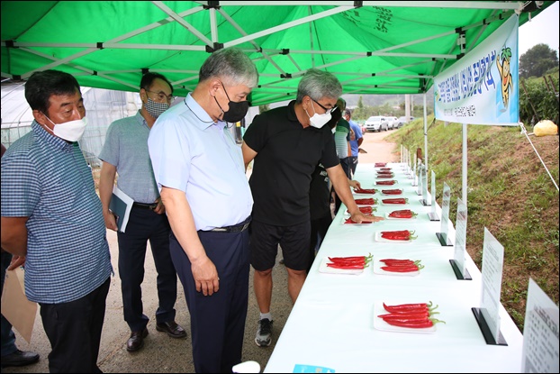 ¡ã¹®Á¤¿ì ±Ý»ê±º¼ö°¡ Áö³­ 3ÀÏ °íÃß ¸·µ¤±â ½Ã¹ü»ç¾÷ Áß°£Æò°¡È¸ ¹× °íÃß Ç°Á¾Àü½Ãȸ¿¡ Âü¼®ÇØ ³ó°¡¿¡¼­ »ý»êµÈ °íÃß Ç°Á¾À» »ìÆìº¸´Â ¸ð½À. ¨Ï±Ý»ê±ºÃ»