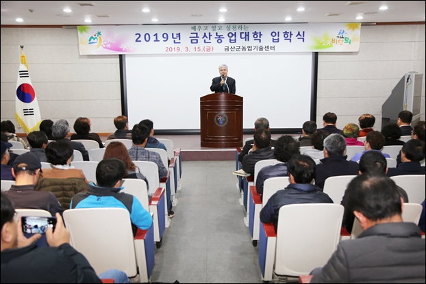 ±Ý»ê±ºÀº Áö³­ 15ÀÏ ³ó¾÷±â¼ú¼¾ÅÍ ´ë°­´ç¿¡¼­ ±Ý»ê³ó¾÷´ëÇÐ 4°³Çаú 220¿©¸íÀÌ Âü¼®ÇÑ °¡¿îµ¥ ÀÔÇнÄÀ» °³ÃÖÇß´Ù°í ¹àÇû´Ù.