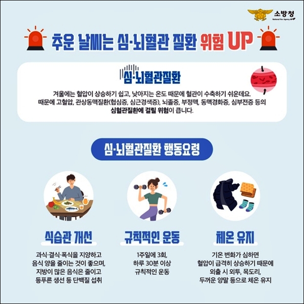 ±Ý»ê¼Ò¹æ¼­(¼­Àå ±èÅÂÇü)´Â ÃÖ±Ù ±â¿ÂÀÌ ³·¾ÆÁö¸é¼­ ½É¡¤³úÇ÷°üÁúȯ ¹ß»ý À§ÇèÀÌ ³ô¾ÆÁö°í ÀÖ´Ù¸ç ±º¹ÎµéÀÇ °¢º°ÇÑ ÁÖÀǸ¦ 22ÀÏ ´çºÎÇß´Ù.