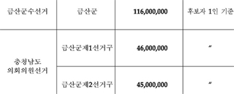 ±Ý»ê±º¼±°üÀ§, Á¦8ȸ µ¿½ÃÁö¹æ¼±°Å ¼±°Åºñ¿ëÁ¦ÇÑ¾× °ø°í