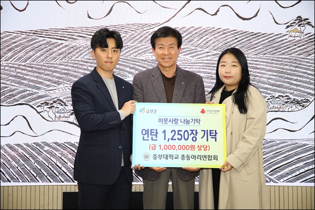 ÁߺδëÇб³ Ãѵ¿¾Æ¸®¿¬ÇÕȸ(ȸÀå ¿Àº´ÅÂ)´Â Áö³­ 25ÀÏ ±Ý»ê±ºÃ»À» ¹æ¹®ÇØ Ãß¿î °Ü¿ïÀ» ¸Â´Â ±Ý»ê±ºÀÇ ¾î·Á¿î ÀÌ¿ôÀ» À§ÇØ ½á´Þ¶ó¸ç 100¸¸ ¿ø »ó´çÀÇ ¿¬Åº 1250ÀåÀ» ±âŹÇß´Ù.