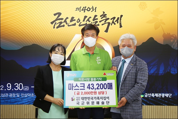 ±Ý»ê±ºÀº (»ç)´ëÇѹα¹°¡Á·ÁöÅ´ÀÌ(ÀÌ»çÀå ¿À¼Áø)¿¡¼ Áö³ 2ÀÏ Ãß¼®À» ¸Â¾Æ ¾î·Á¿î ÀÌ¿ôµé¿¡°Ô Àü´ÞÇØ ´Þ¶ó¸ç ±¹±ºÀ§¹®¿¹¼ú´ÜÀ¸·ÎºÎÅÍ ÈÄ¿ø¹ÞÀº 2000¸¸¿ø »ó´çÀÇ ¸¶½ºÅ© 4¸¸3200ÀåÀ» ±âŹÇß´Ù°í ¹àÇû´Ù.