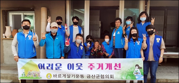 ¹Ù¸£°Ô»ì±â¿îµ¿ ±Ý»ê±ºÇùÀÇȸ(ȸÀå È«¼±Ç¥) »êÇÏ ¿©¼ºÈ¸(ȸÀå ÀÌÀº°æ, ±Ý»ê°ÇÃàÀÚÀç ´ëÇ¥)°¡ Áö³ 19ÀÏ ±Ý»ê±º ±Ý¼º¸é ÇϽŸ®¿¡ °ÅÁÖÇÏ´Â Ãë¾à°¡Á¤¸¦ ¹æ¹®ÇØ ÁÖ°Åȯ°æ °³¼±»ç¾÷À» ½Ç½ÃÇß´Ù.