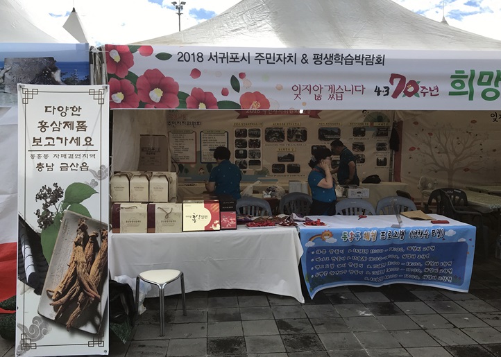 Áö³15ÀÏ Á¦ÁÖµµ ¼±ÍÆ÷½Ã¿Í ¼±ÍÆ÷½Ã ÁÖ¹ÎÀÚÄ¡ÇùÀÇȸ°¡ °øµ¿ ÁÖ°üÇÏ´Â 2018 ¼±ÍÆ÷½Ã ÁÖ¹ÎÀÚÄ¡&Æò»ýÇнÀ¹Ú¶÷ȸ 4.3Ç×Àï Ã߸ðÇà»çºÎ½º(µ¿Èﵿ)¿¡¼ ±Ý»êÀλïÃàÁ¦ È«º¸ ¸®Ç÷¿ ¹× ±Ý»êÀÎ»ïÆ¯»êǰÀ» ÆÇ¸ÅÇϰí ÀÖ´Â °Í.