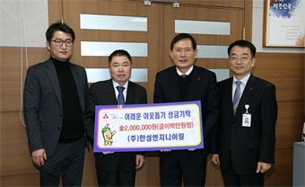 ¢ßÇѼº¿£Áö´Ï¾î¸µ ±è°ÇÇØ ´ëÇ¥(¿ÞÂʵιøÂ°)°¡ Ãß¿î°Ü¿ïÀ» ¸Â¾Æ ¾î·Á¿î ÀÌ¿ôÀ» À§ÇØ ½á´Þ¶ó¸ç ¼º±Ý 200¸¸¿øÀ» ±Ý»ê±º¿¡ ±âŹÇß´Ù.¢ßÇѼº¿£Áö´Ï¾î¸µÀº óÀ½À¸·Î ÀÌ¿ô...
