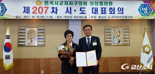¸ð¹üÀûÀÎ ÀÇÁ¤È°µ¿À¸·Î Áö¹æÀÚÄ¡ ¹ßÀü°ú Áö¿ª°øµ¿Ã¼ Ȱ¼ºÈ¿¡ ±â¿©ÇÑ °ø·Î¸¦ ÀÎÁ¤¹Þ¾Æ Àü±¹ÀÇÀåÇùÀÇȸÀÇ ÃßõÀ¸·Î ±¹È¸ÀÇÀå »óÀ» ¼ö»óÇÏ´Â ¿µ¿¹¸¦ ¾ÈÀº °ÍÀÌ´Ù.