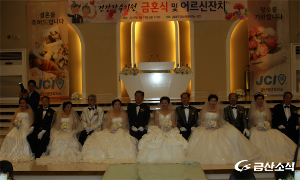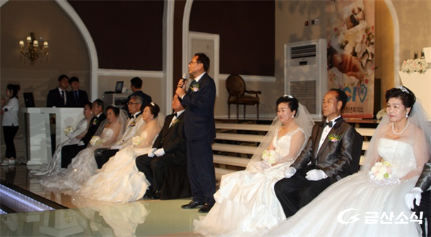 ±Ý»êû³âȸÀǼÒ(ȸÀå ¹Ú½ÂÃá)°¡ ºÎºÎÀÇ ³¯À» ±â³äÇØ Áö³­19ÀÏ ¿ÀÀü11½Ã ±Ý»ê¿þµùij½½¿¡¼­  Àå¼ö¸¦ ±â¿øÇÏ´Â 6½ÖÀÇ ±ÝÈ¥½ÄÀ» °¡Á® È­Á¦°¡ µÇ°í ÀÖ´Ù.