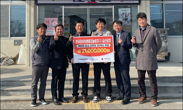 Çѱ¹Å¸ÀÌ¾î¾ØÅ×Å©³î·ÎÁö ±Ý»ê°øÀå(°øÀåÀå Ȳ¼ºÇÐ)ÀÌ Áö³­ 8ÀÏ ±Ý»ê±º Á¦¿ø¸é¿¡ °æ·Î´ç ¿î¿µÁö¿ø±Ý 2100¸¸ ¿øÀ» Àü´ÞÇß´Ù.