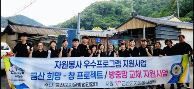¡®±Ý»ê Èñ¸Á-â ÇÁ·ÎÁ§Æ®¡¯·Î ÁøÇàµÈ ºÀ»çȰµ¿Àº ÁÖ°Åȯ°æÀÌ ¿­¾ÇÇÑ °¡Á¤À» ´ë»óÀ¸·Î ¹æÃæ¸ÁÀ» ±³Ã¼ÇØ ¿©¸§Ã¶ À§»ý ¹× ¾ÈÀüÀ» µµ¸ðÇϰí, ÄèÀûÇÑ »ýȰȯ°æÀ» Á¦°øÇϱâ À§ÇØ ±âȹµÆ´Ù.