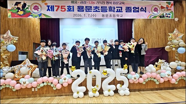 ¿ë¹®ÃʵîÇб³´Â Áö³­ 1¿ù 7ÀÏ Á¦75ȸ Á¹¾÷½ÄÀ» ¿­°í 10¸íÀÇ Á¹¾÷»ýÀ» ÃàÇÏÇß´Ù. À̳¯ Á¹¾÷½ÄÀº °¡Á·°ú Áö¿ª»çȸ °ü°èÀÚ, ÀçÇлýµéÀÌ ÇÔ²²ÇÑ °¡¿îµ¥ µû¶æÇÑ ºÐÀ§±â ¼Ó¿¡¼­ ÁøÇàµÆ´Ù.