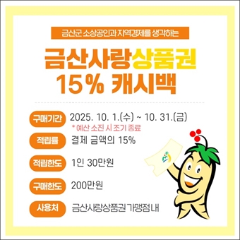 ±Ý»ê±º, 10¿ù ±Ý»ê»ç¶û»óǰ±Ç ij½Ã¹é Àû¸³·ü 15% À¯Áö °¡°è ºÎ´ã ¿ÏÈ­¡¤Áö¿ª°æÁ¦ Ȱ·Â µµ¸ð