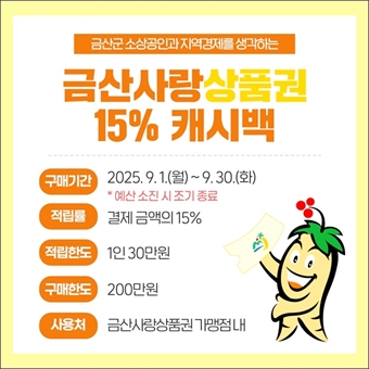 ±Ý»ê±ºÀº ±Ý»ê»ç¶û»óǰ±Ç 9¿ù ij½Ã¹é Àû¸³·üÀ» ±âÁ¸ 10%¿¡¼­ 15%·Î È®´ë Àû¿ëÇϰí ÀÖ´Ù°í 18ÀÏ ¹àÇû´Ù.À̹ø ÇÒÀÎÀ² »óÇâÀº Á¤ºÎÀÇ Áö¿ªÈ­... [±ºÇàÁ¤] ±è±âÇö ±âÀÚ