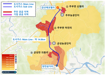 »ç¾÷°èȹ¼­¿¡¼­ ¹àÈù µµ½Ã°¡½º °ø±Þ°èȹµµ¿¡ µû¸£¸é, ±Ý»ê±º ¾çÀü »ï°Å¸®¿¡¼­ ÃßºÎ¸é ½ÅÆò¸®±îÁö µµ½Ã°¡½º °ü·Î°¡ °³¼³µÉ ¿¹Á¤À¸·Î µµ½Ã°¡½º °ü·Î°¡ Åë°úÇÏ´Â ±Ý¼º¸é ÀÇÃѸ®, ÃßºÎ¸é ¸¶Àü¸®, ÃßºÎ¸é ½ÅÆò¸® ÀÏ´ë ¾à 2700°¡±¸ ¾à 6900¿©¸íÀÇ ÁÖ¹ÎÀÌ µµ½Ã°¡½º°ø±ÞÇýÅÃÀ» º¼ ¼ö ÀÖ°Ô µÉ °ÍÀ¸·Î ±â´ëµÈ´Ù,