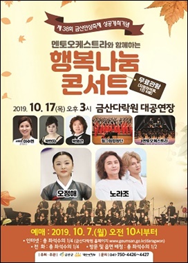 ±Ý»ê±ºÀÌ ¿À´Â 17ÀÏ ¿ÀÈÄ 3½Ã ±Ý»ê´Ù¶ô¿ø ´ë°ø¿¬Àå¿¡¼­ ¸àÅä¿ÀÄɽºÆ®¶ó¿Í ÇÔ²²ÇÏ´Â Á¦38ȸ ±Ý»êÀλïÃàÁ¦ ¼º°ø°³ÃÖ±â³ä ¡®Çູ³ª´® Äܼ­Æ®¡¯¸¦ °³ÃÖÇÑ´Ù.